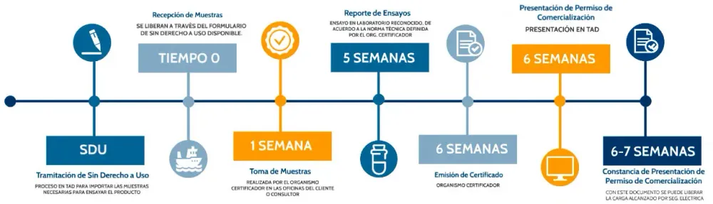 Groll Ingeniería se encarga de todo el proceso de obtención del Certificado de Seguridad Eléctrica, desde el ingreso de las muestras a su base de datos hasta la presentación del formulario de comercialización en TAD. Este proceso incluye la tramitación de SDU (Sin Derecho a Uso) y la emisión del certificado correspondiente.